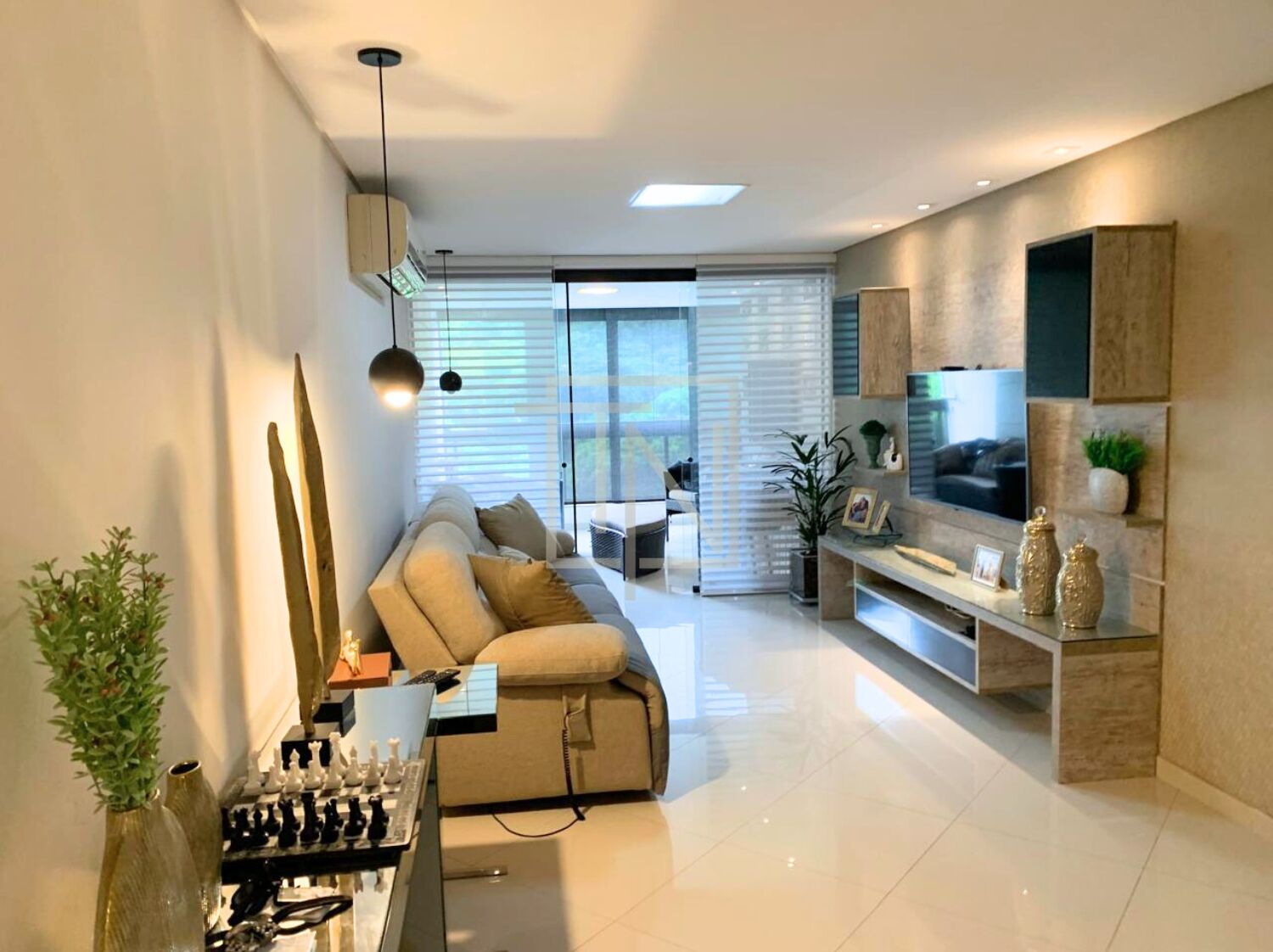 São três suítes, todas equipadas com ar-condicionado, proporcionando conforto e privacidade para toda a família. O piso em porcelanato realça o acabamento moderno e sofisticado, enquanto os móveis planejados agregam funcionalidade e elegância aos ambientes.