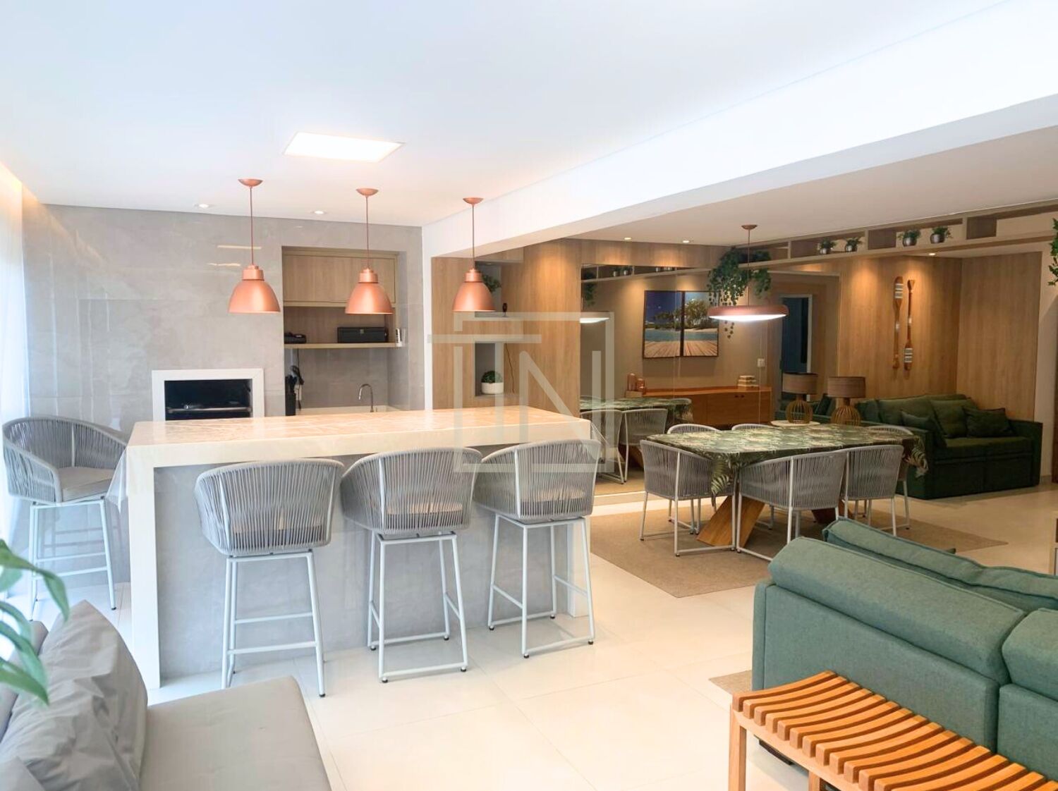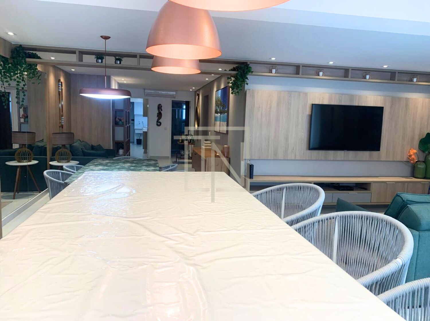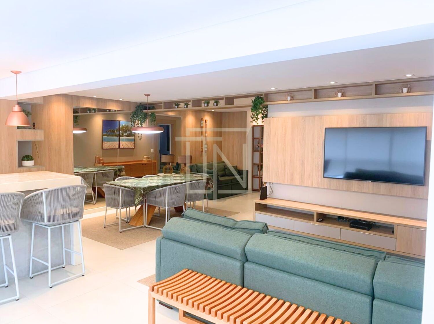 Com 135m² de área útil, o imóvel dispõe de três dormitórios, sendo uma suíte. Todos os ambientes são amplos, finamente mobiliados e decorados, com destaque para a varanda gourmet, perfeita para receber com elegância.