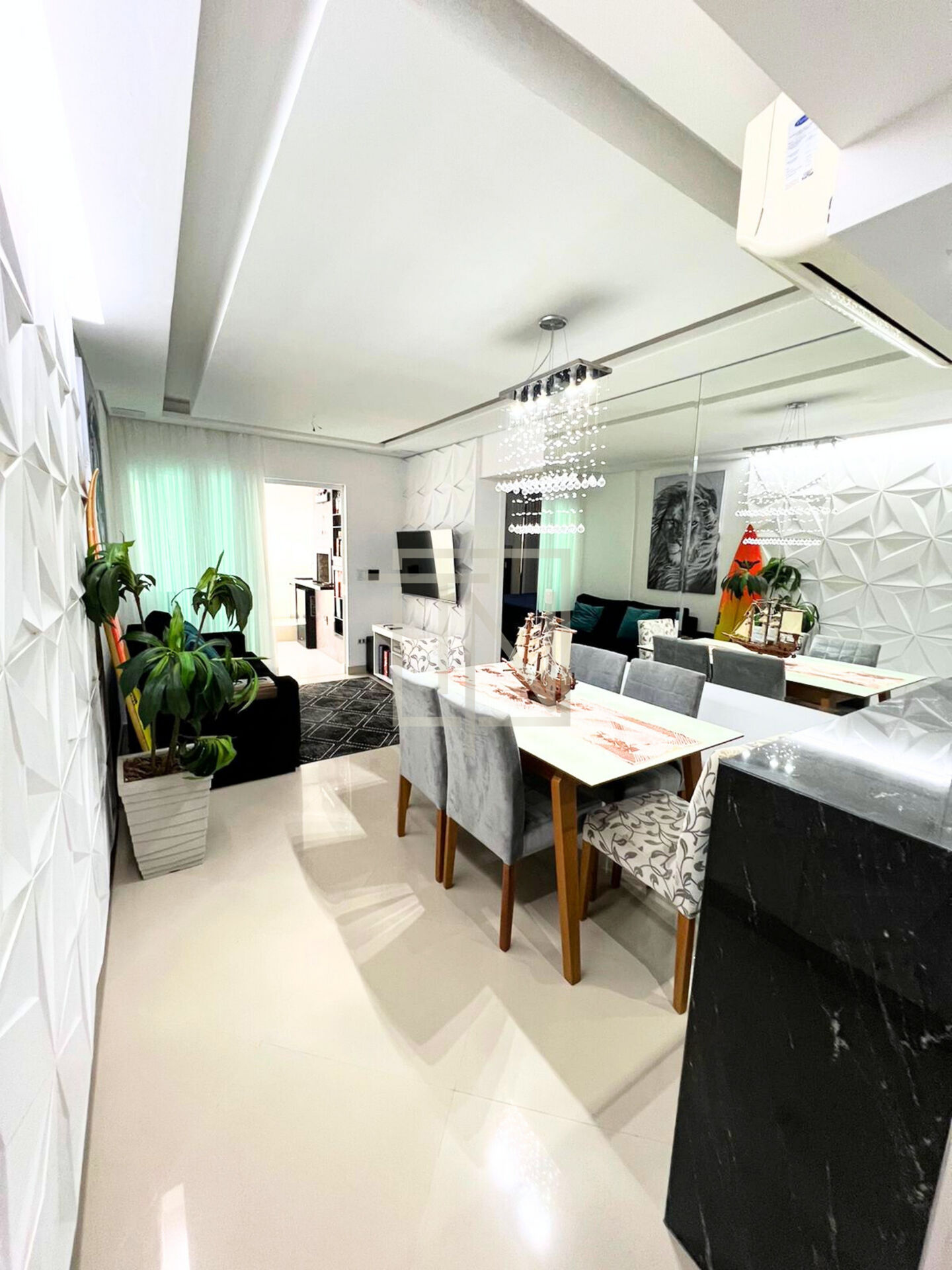 Detalhes: piso em porcelanato, ambientes mobiliados com móveis planejados e ar-condicionado nos dormitórios e na sala. Tudo pronto para morar com conforto e praticidade.