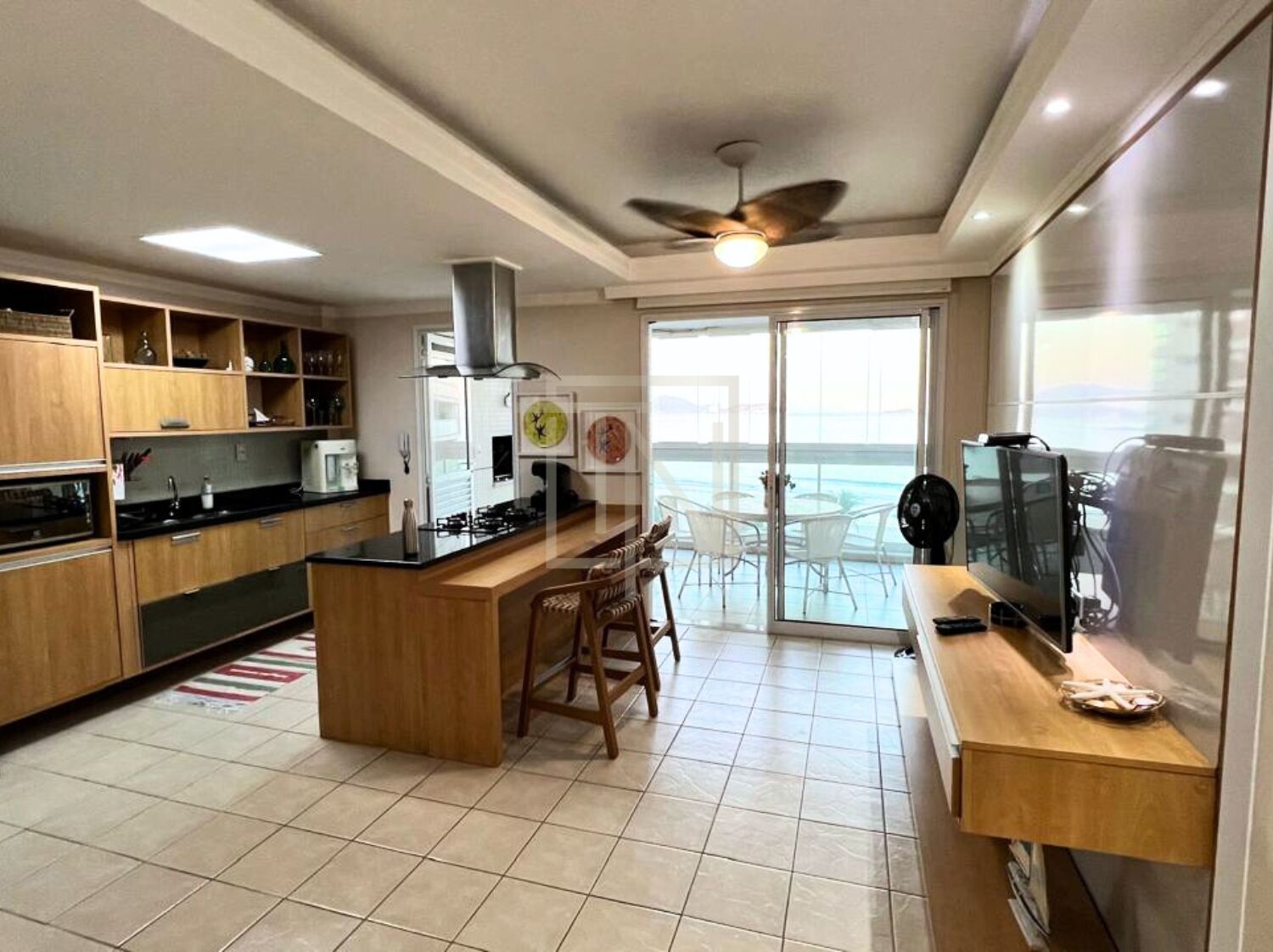 Amplo apartamento com 100m² de área útil, totalmente reformado e mobiliado. Possui 2 dormitórios, sendo 1 suíte, sala para dois ambientes integrada à varanda gourmet com envidraçamento e uma vista deslumbrante para o mar. A cozinha é equipada, com área de serviço e banheiro social.