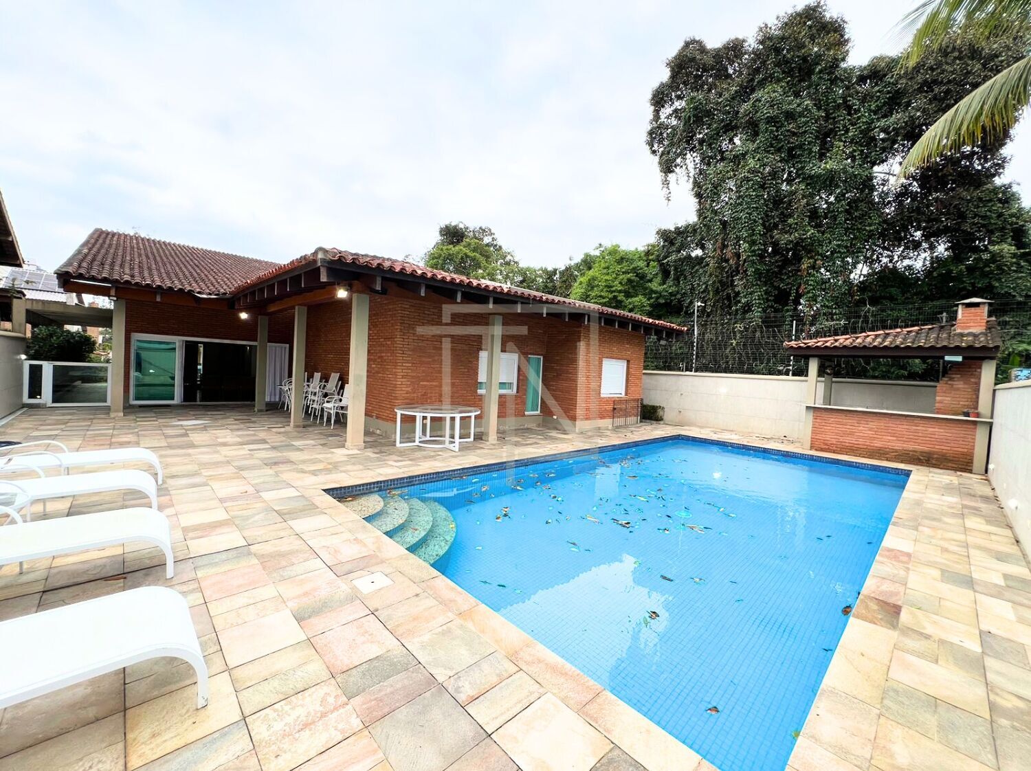 A área externa da casa conta com quintal coberto e descoberto, jardim com manutenção regular e uma ampla piscina com escada de alvenaria para maior segurança, além de ducha externa. O espaço gourmet oferece mesa de jantar para oito pessoas, mesa de apoio com quatro lugares, ombrelones e quatro espreguiçadeiras. A garagem tem capacidade para até seis carros.